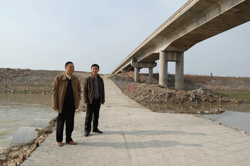 2010年2月22日,公司黨委書記、總經理李世龍,副總經理侯力、辦公室主任紀愛國等一行到蕪申運河馬宣段當高橋工程WSYH-03標施工現場檢查工作。
