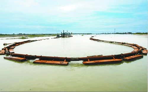 9月4日,疏浚船只(安徽交航公司皖吸五號絞吸挖泥船)在蕪申運河宣城段進行疏浚拓寬作業。全長296公里、有著華東水運第二通道的蕪(湖)申(上海)運河航道整治工程目前全面展開,運河安徽宣城段率先開始河道疏浚拓寬作業。蕪申運河的宣城胥溪段于春秋時期開挖,是我國古老的人工運河之一。蕪申運河從安徽蕪湖起點,經江蘇到上海,其中安徽段總投資44億元。該運河整治完工后,常年可通航1000噸級船舶,由蕪湖到上海的水運距離比現在的長江水運縮短100余公里。