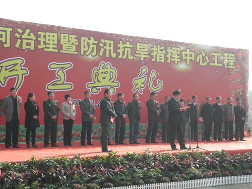 在開工典禮上,安慶市防洪辦主任王磊介紹了工程概況,向前來參加開工典禮儀式的各位來賓表示歡迎和感謝,同時介紹工程的前期部署,表達了建設優質工程的信心和決心。最后安慶市副市長宋圣君宣布工程正式開工。出席開工典禮的還有安慶市水務局、防洪辦、宜秀區政府、工程指揮部和施工單位的有關領導。我公司副總經理侯力出席了開工典禮。