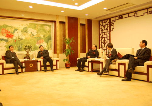 集團公司總經理、副董事長、黨委副書記趙時運(左二),公司總經理、黨委書記李世龍(左一)等參加會見