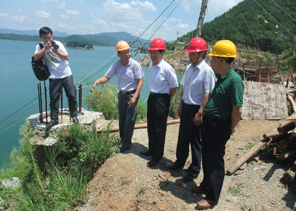 李副董事長和牛主席一行首先察看了施工生產情況,在駐地項目部會議室聽取了交航公司劉朝發副總經理對工程施工進度、質量、安全等情況的匯報后,李副董事長作重要指示:一、該工程是太湖縣一個較大的項目,全縣上下應非常重視、高度關注,要把工程進度、質量、安全和文明施工做好,交出一份滿意的答案,讓全縣人民感到我們有真誠、有誠意、有戰斗力,工程干得好;二、項目施工難點、重點期已過去,是大干、快上、出成績、抓效益的階段,要科學管理,把時間節點安排好,施工工序安排好,發揮黨員先鋒模范作用,再接再厲,實現一流工程的既定目標;三、安徽交航要以此為契機,做好旅游品牌工程,發揮旅游廣告效應,為安徽建工、安徽交航在皖西南旅游要地散發一張靚麗的名片。