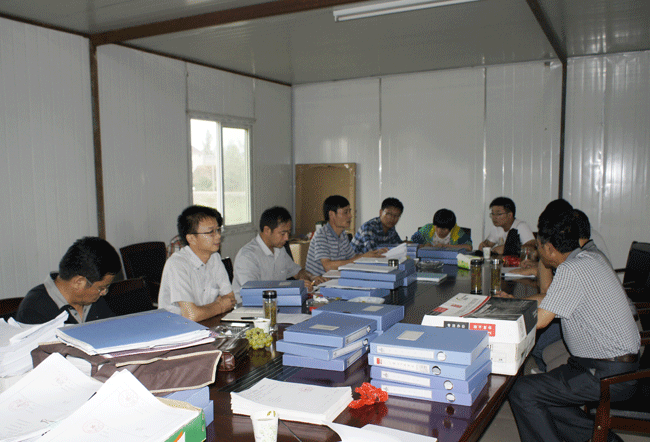 檢查組一行首先在項(xiàng)目部會(huì)議室聽(tīng)取了項(xiàng)目經(jīng)理朱文明、項(xiàng)目總工孫宗飛有關(guān)青山河高新技術(shù)產(chǎn)業(yè)園區(qū)路網(wǎng)工程項(xiàng)目的簡(jiǎn)單介紹以及項(xiàng)目管理部在狠抓工程質(zhì)量管理方面所做工作的情況匯報(bào);聽(tīng)取匯報(bào)后,檢查組對(duì)項(xiàng)目關(guān)于質(zhì)量管理方面的內(nèi)業(yè)資料進(jìn)行了逐項(xiàng)檢查。