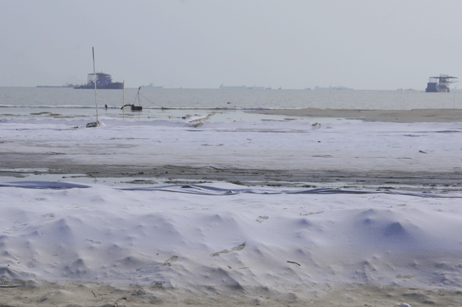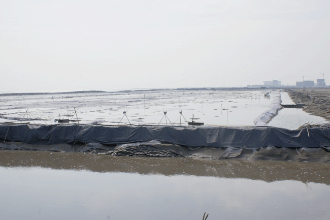 李總一行參觀了天津濱海新區圍海造田項目現場,考察了真空預壓技術的實際應用。真空預壓法是在需要加固的軟土地基表面先鋪設砂墊層,然后埋設垂直排水管道,再用不透氣的封閉膜使其與大氣隔絕,薄膜四周埋入土中,通過砂墊層內埋設的吸水管道,用真空裝置進行抽氣,使其形成真空,增加地基的有效應力。