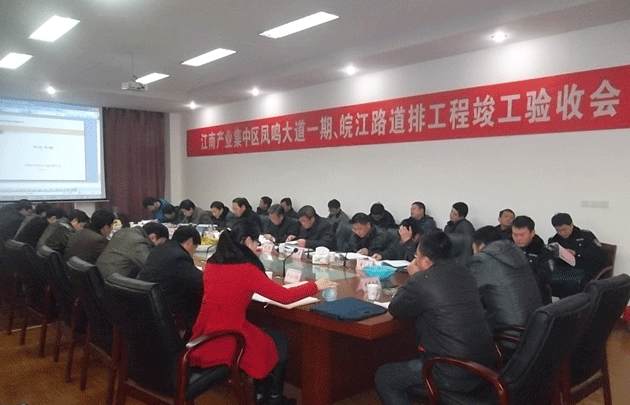 2013年1月22日,由交航公司承建的江南產業集中區皖江路道排工程在江南集中區政務中心二樓會議室召開驗收會。驗收會上,驗收組和專家認真聽取了建設單位、設計單位、檢測單位、監理單位和施工單位對項目建設有關情況的匯報,詳細查閱核實了有關內業資料,并對工程實體進行了現場查驗,皖江路道排工程順利通過竣工驗收。