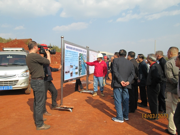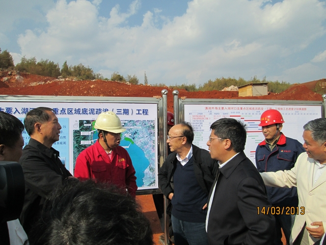 2013年3月14日,昆明市市委副書記、市委秘書長及云南省人大代表部分領導蒞臨安徽交航公司滇池治理三期工程小黑蕎存泥場指導工作。在現場,指揮部副指揮長王勇及該公司項目經理邵佳就工程各方面情況向省市領導做了詳細的匯報,市委副書記、市委秘書長對該公司承接的滇池治理工程的質量及安全情況予以充分肯定,并督促一定要加快工程進度,確保工程按期完工。