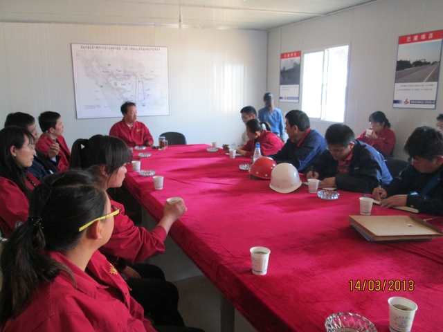 指導工作結束后,副指揮長王勇在工地現場召開緊急工作會議,會議上,副指揮長對安徽交航公司負責的工程進行了表揚,一再傳達并強調省市領導提出的工期緊張的問題,要保證在昆明雨季到來之前完成計劃施工部分。該公司項目經理邵佳表示項目部全體人員一定積極響應領導號召,在現有基礎上再接再厲,確保按期完成工程任務。