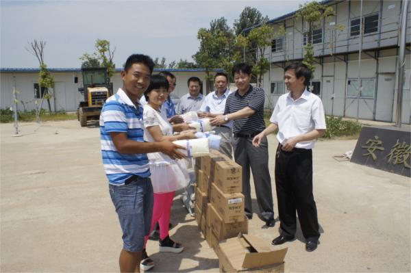 7月31日上午,集團公司副總經理許克順,副總會計師王曉軍,工會副主席吳曉伍等一行在公司黨委書記、總經理李世龍,黨委副書記、紀委書記曹興堂,工會主席王永來等陪同下,冒著酷暑來到當涂青山河工業園區工程看望并慰問了堅守崗位的一線職工,給職工送去絲絲清涼。