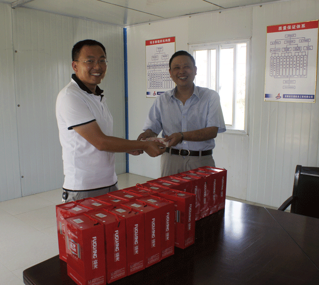 公司黨委書記、總經理李世龍代表公司對集團公司領導的到來表示衷心的感謝!要求項目部一定要按照集團公司領導的要求,做好工程的后期各項工作。并將公司的“慰問金”送到項目經理手中,公司對項目部、工程處的“送清涼”活動正式啟動。