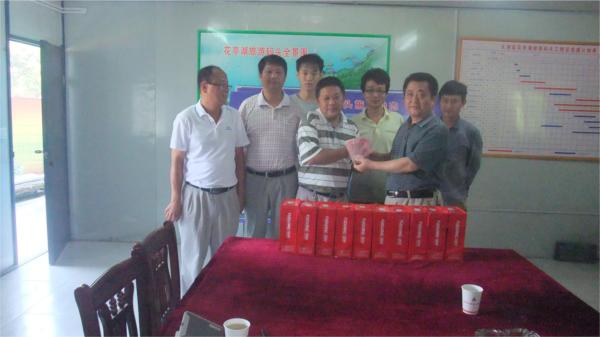 目前,花亭湖項目部正掀起以抓進度、搶工期、保質(zhì)量為主題的“三看三比”活動的施工高潮,全線參建員工戰(zhàn)高溫,斗酷暑,揮汗如雨的奮戰(zhàn)在施工現(xiàn)場的第一線。在這個大干快上的緊迫時期,曹書記和王主席等帶著公司領導的關(guān)心與厚愛,頂著炎炎烈日趕赴花亭湖項目部看望生產(chǎn)一線的員工,專程為施工一線的員工送清涼并表示誠摯的慰問,讓一線的員工感到了口涼心暖。曹書記與王主席等一行冒著高溫了解施工進展情況,聽取了駐地分管領導公司副總經(jīng)理劉朝發(fā)、項目經(jīng)理衛(wèi)邦齊對工程施工情況和進度安排的講解,并與員工進行了親切的交談,叮囑員工要注意身體,合理安排作息時間,做好防暑降溫和安全生產(chǎn)工作,同時希望在保障工程質(zhì)量的同時確保工程進度穩(wěn)步推進。
