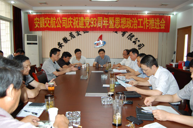 為紀念中國共產黨誕辰93周年,進一步貫徹落實黨的十八屆三中全會精神,表彰公司2013~2014年度先進基層黨組織和優秀共產黨員,6月27日下午,安徽交航公司在五樓會議室召開了慶祝建黨93周年暨一先一優表彰會,公司領導班子成員、所屬各單位及機關各部室主要負責人、黨支部書記、優秀黨員代表等共28人參加了會議。會議由公司黨委委員、副總經理方申柱主持。