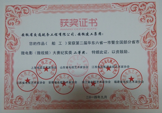 近日,安徽省微電影協會發來賀信,在剛剛結束的“第二屆華東六省一市暨全國部分省市微電影作品大賽”評選中,我公司制作、集團公司推薦的參賽作品《船工》榮獲微電影大賽紀實類二等獎。本次大賽由華東六省一市電視藝術家協會、華人頻道聯合舉辦,來自山東、上海、江西、江蘇、安徽、浙江等十多個省市的500多部作品參評。