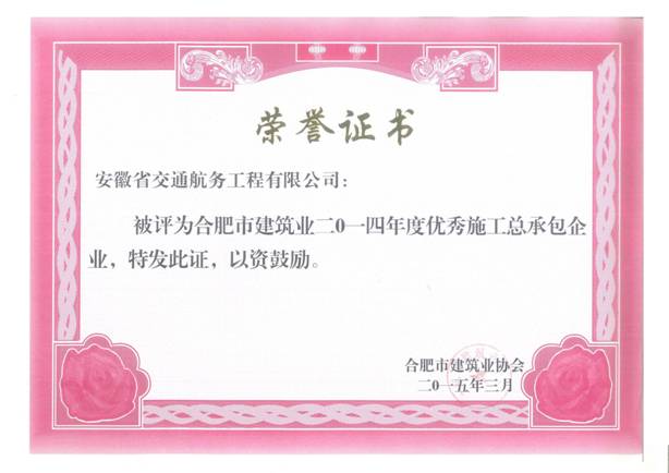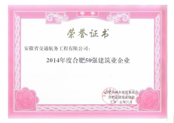 近日,合肥市建筑業協會公布了2014年度合肥市建筑業企業表彰名單,我公司榜上有名,喜獲“合肥市建筑業企業50強”、“合肥市優秀施工總承包企業”兩項榮譽稱號。