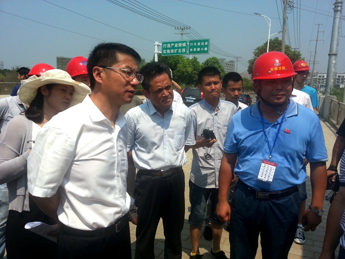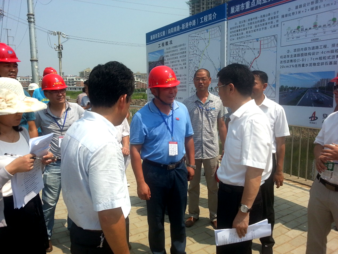 2016年7月28日上午10時,巢湖市市長張生在巢湖市重點局局長袁浩及相關人員陪同下,蒞臨安徽交航承建的亞父路工程施工現場,視察指導工作。