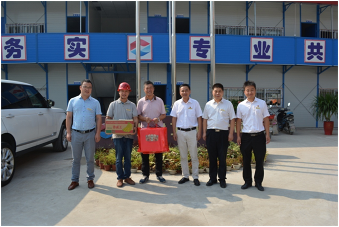 丹桂飄香時,月圓中秋到。9月14、15日,亳州建工總經(jīng)理方申柱、副總經(jīng)理劉軍、副總經(jīng)理兼財務(wù)總監(jiān)李現(xiàn)龍、總經(jīng)理助理馬建一行分別前往亳州建工承建的鄭店子項目部、老煙廠項目部、創(chuàng)客空間項目部、駕考中心項目部,看望慰問在節(jié)日期間仍處于生產(chǎn)一線辛勤作業(yè)的工作人員,向他們致以節(jié)日問候。方總一行把節(jié)日慰問品送到了各項目部員工的手中,并囑咐大家,在施工過程中,一定要保質(zhì)、保量、保安全,希望大家再接再厲,克服困難,出色的完成施工生產(chǎn)任務(wù)。