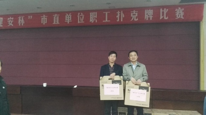 鑒于公司在建安集團“摜蛋比賽”中的出色表現, 11月5日,由亳州市總工會主辦,建安集團協辦,在市行政會議中心第一會議室組織舉辦了“建安杯”市直單位職工撲克牌比賽,公司副總經理劉軍、材料采購部經理羅以紅被推選參加了亳州市市直單位職工撲克比賽,比賽共組織32只參賽隊伍,經過緊張、激烈的淘汰賽,公司副總經理劉軍、材料采購部經理羅以紅獲得本次“建安杯”撲克牌比賽二等獎。