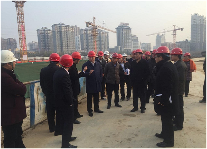 11月30日上午,市委常委、常務副市長劉輝帶隊調研指導亳州建工有限公司承建的建安文化廣場項目,集團總經理韋翔、公司副總經理劉軍等相關領導陪同調研。