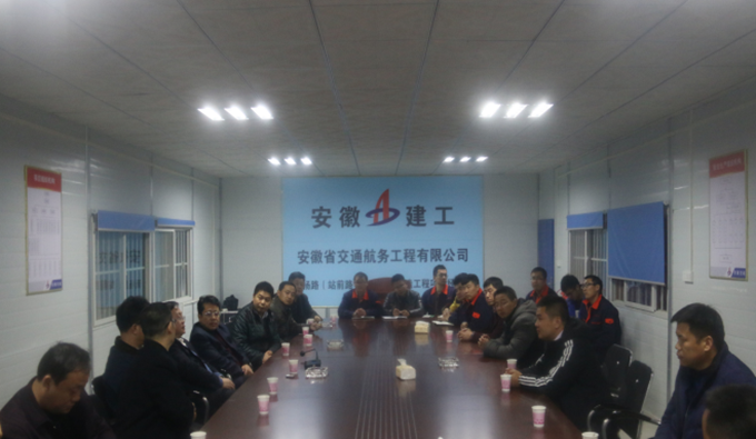 會議由方總主持,方總在聽取項目負責人PPT介紹后,對項目一線職工表達了深切的慰問,詢問了工程進度及施工難點,并要求項目落實安全生產工作。最后李總發表講話指出蕭楊路項目是建安集團和安徽交航合作模式的開始,是亳州建工走出亳州的代表性項目,在強調保證工程質量與安全的前提下,加快施工進度,最后希望廣大員工抓住機遇、能從“安全、質量、進度、效益”出發,加強施工過程控制,爭取工程早日完工。