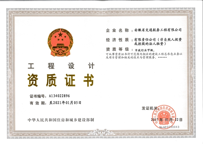 近日,住房和城鄉(xiāng)建設(shè)部發(fā)布公告,安徽交航成功獲得市政公用工程施工總承包特級資質(zhì)及市政行業(yè)甲級設(shè)計資質(zhì),成為我省首家省屬市政特級資質(zhì)企業(yè)。