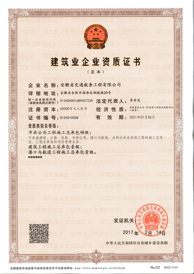 特級資質(zhì)的成功晉升,標志著安徽交航發(fā)展邁入了又一座新的里程碑。特級資質(zhì)是我國建筑業(yè)資質(zhì)標準的最高級別,是衡量建筑企業(yè)整體實力的重要標志,更是一個地區(qū)建筑業(yè)發(fā)展水平的重要標志。