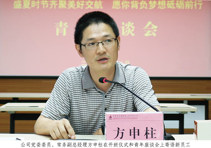 方申柱在開班儀式上作了動員講話,他號召廣大新員工要充分了解交航,自覺轉(zhuǎn)變角色;盡快融入交航,牢記崗位職責;真心熱愛交航,書寫無悔青春。方申柱結(jié)合自己畢業(yè)以來的工作、生活和學習經(jīng)歷,以一名老員工的名義語重心長地送給新員工“三個法寶”:前路漫漫,要在懈怠時做到堅持、堅持、再堅持;學無止境,要在業(yè)余時做到學習、學習、再學習;成事不易,要在工作中做到主動、主動、更主動。方申柱滿懷深情地說道:“天高任鳥飛,海闊憑魚躍。公司的未來靠大家一起去創(chuàng)造,自己的未來更要靠自己去打拼。青年朋友要立足崗位,自覺踐行‘誠信為本、敬業(yè)至上’的企業(yè)核心價值觀,弘揚‘團結(jié)、拼搏、求實、創(chuàng)新’的企業(yè)精神,發(fā)揚‘特別能吃苦,特別能戰(zhàn)斗’的企業(yè)作風,堅持腳踏實地、展示聰明才智,成就交航的偉大事業(yè)、實現(xiàn)自己的人生理想!”