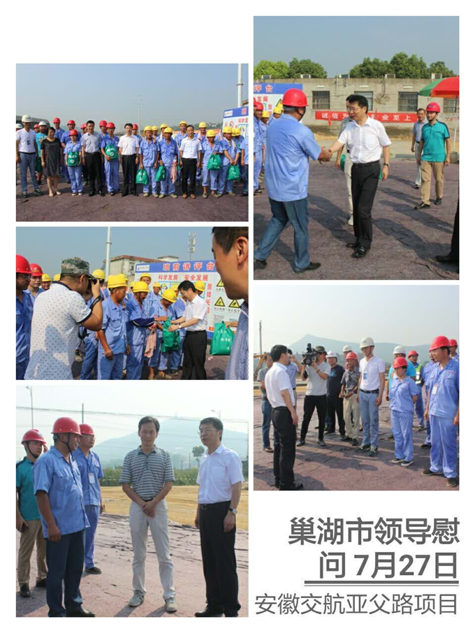 2017年7月27日上午,巢湖市市委副書(shū)記、市長(zhǎng)張生在巢湖市總工會(huì)、重點(diǎn)局主要領(lǐng)導(dǎo)的陪同下,冒著酷暑來(lái)到我公司亞父路項(xiàng)目部施工現(xiàn)場(chǎng)檢查慰問(wèn),為大家送來(lái)了夏季防暑降溫用品。