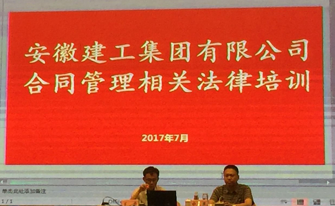本次培訓內容主要包括合同法相關知識、合同法律風險防控以及民事訴訟兩大板塊。在專題培訓中,安徽省人民檢察院王玉蘭結合自身工作,作了題為《謹廉從業,遠離職務犯罪》的精彩報告。安徽百商律師事務所張偉東以《民事訴訟實務》為題,對訴前程序、審判程序、執行程序、事外民事規定進行了細致分析,為企業糾紛解決方式的選擇提供了很好的指引。安徽徽商律師事務所吳正林結合合同的內涵、特點、合同起草以及合同的主要風險點,深入講解了合同主體常見問題及案例分析。安徽徽商律師事務所劉大文分析了施工合同內容條款約定存在的法律風險和防范,工期索賠期限、合同約定的權利與義務。