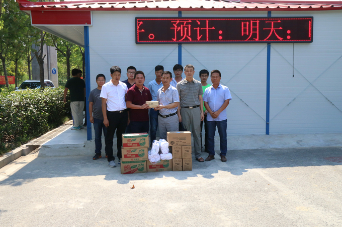 驕陽似火,酷暑難當(dāng),公司領(lǐng)導(dǎo)心系職工,由李書記和侯總帶隊(duì),深入地鐵項(xiàng)目施工生產(chǎn)一線,向全體職工發(fā)放了清涼飲料、防暑藥品和夏季生活用品,并對職工表示慰問,希望大家在搶工期的熱潮中要做好暑期安全工作。