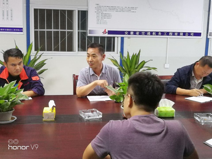 首先,項目負(fù)責(zé)人傳達(dá)了淮北港投“迎接交通部督查”專題會議精神,強(qiáng)調(diào)此次督查的重要性,項目部全體成員都要從思想上高度重視,當(dāng)作一項政治任務(wù)來完成,并針對督查做了現(xiàn)場選點(diǎn)、內(nèi)業(yè)資料完善、后勤保障等具體方面的安排,要求在交通部檢查之前,加強(qiáng)施工進(jìn)度、外圍協(xié)調(diào)及過程管理,把兩個圍堰做成示范點(diǎn),要求船隊施工過的航道達(dá)到標(biāo)準(zhǔn)化,形成項目的“亮點(diǎn)”。