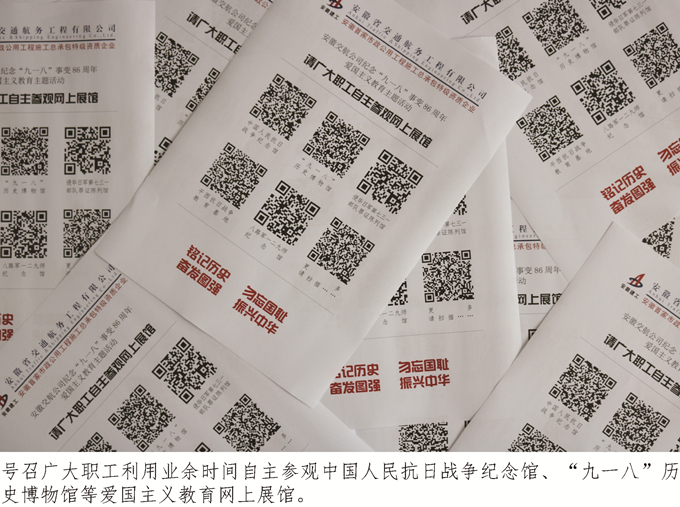 【編者按】1931年9月18日,日本帝國主義悍然發動了震驚中外的“九一八”事變。自此,中國人民開始了長達14年之久的抗日戰爭。為了紀念“九一八”事變86周年,教育廣大職工銘記歷史、勿忘國恥、奮發圖強、振興中華,安徽交航公司近日舉行了紀念“九一八”事變86周年愛國主義教育系列主題活動……