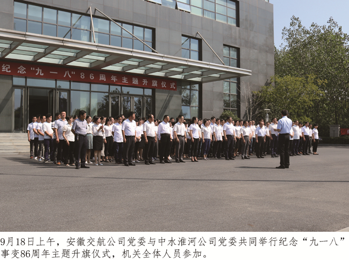 “愛國”是社會主義核心價值觀公民個人層面價值準則的首要內容。安徽交航公司黨委始終重視職工愛國主義教育,堅持全局謀劃、多策并施,堅持務實推進、主動作為,自覺將愛國主義教育融入職工思想政治教育全過程,引導廣大職工把愛國意識內化于心、外化于行,進而把愛國熱情轉化為努力工作、干事創業的內生動力。此次紀念“九一八”事變86周年主題活動是安徽交航公司愛國主義教育的組成部分,也是公司黨委高度重視職工思想政治教育的真實縮影。紀念活動與中水淮河公司黨委合作,更是充分體現了公司黨委的開闊視野、包容心態和創新思路。今后,安徽交航公司黨委、中水淮河公司黨委將在黨建工作資源、黨建工作內容等方面堅持共建、共享原則,合力推動雙方黨建工作水平更上層樓。此外,雙方還將在生產經營、人才交流等方面探索開辟新的合作空間,真正把黨建工作成效轉化為推動企業發展的強大動力!