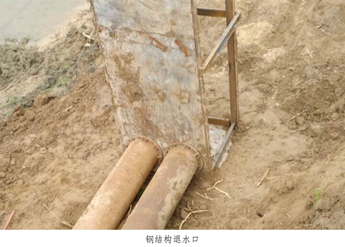 鋼結構退水口。傳統拋泥區退水口為磚結構,通過涵管排水,這種方式不僅成本高,而且涵管銜接處會有滲水的風險。在本項目中,我部工程人員提出設想將退水口設計成鋼結構,并在實際工程中試驗成功。鋼結構的退水口不僅可以規避滲水的風險,由于鋼結構可以重復使用,所以大大降低了成本同時也達到了環保的效果。