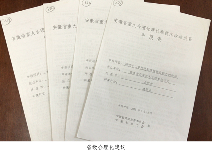 一是開展技術(shù)革新活動,組織職工積極獻計獻策,促進公司發(fā)展。五年來,在技術(shù)創(chuàng)新工作中,形成了公司領(lǐng)導高度重視、相關(guān)部門齊抓共管、各級工會聯(lián)系協(xié)調(diào)、廣大職工踴躍參與的工作格局。公司工會共收集合理化建議和技術(shù)改進項目53項,其中8項榮獲安徽省重大合理化建議和技術(shù)改進成果,15項榮獲安徽建工集團優(yōu)秀合理化建議和技術(shù)改進成果。
