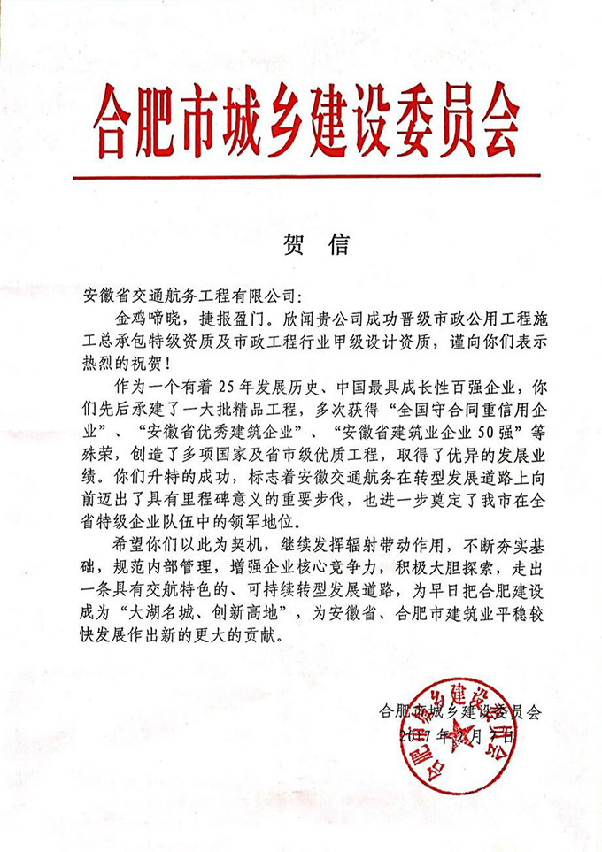 市場準入是企業進行市場經營活動的敲門磚,也見證企業基礎建設水平的高低。曾幾何時,安徽交航受困于此、受制于此、受限于此,僅憑主項二級資質在如浪淘沙般的激烈市場上匍匐前行、艱難開拓,是為交航全體職工特別是勇于面對困難、敢于突破壁壘的市場經營驕子們的“心痛”。鑒于此,公司黨委領導班子審時度勢、高瞻遠矚,及時提出資質、注冊資本等市場準入建設“三步走”規劃:主項提升、“品”字業務資質完善與提升、相關多元完善和提升。功夫不負有心人,千帆過盡不忘初心,企業市場準入建設工作正蹄疾步穩、著力為交航差異化大發展助力賀彩!