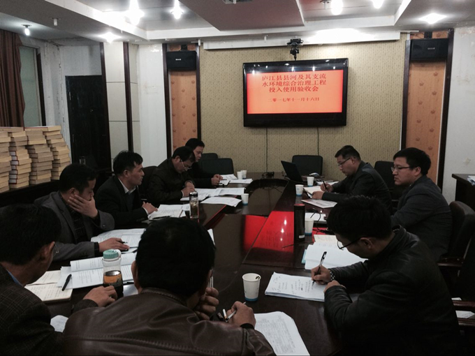 11月16日下午,廬江縣縣河及其支流水環(huán)境綜合治理工程投入使用驗收會在廬江縣水務(wù)局會議室舉行,廬江縣發(fā)改委、廬江縣大建辦、廬江縣城投公司、廬江縣水務(wù)局、設(shè)計單位、監(jiān)理單位相關(guān)領(lǐng)導(dǎo)及公司副總經(jīng)理侯力、安全總監(jiān)李立柱參加了會議。
