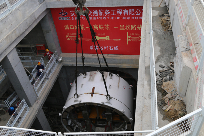 3月27日至29日,經(jīng)過不懈努力,由安徽省交通航務工程有限公司承建的合肥軌道交通4號線3標潛口路站首臺盾構機順利完成吊裝下井,標志著盾構施工即將開始。