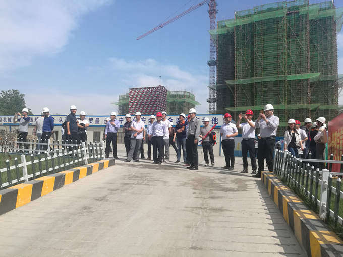 在項目施工現場,對項目的現場部署、標準化建設、工程實體、新技術應用等亮點部位進行觀摩學習。項目部負責人向大家詳細介紹了項目的標準化建設、新技術和信息化應用、進度管理、成本控制、質量管控、安全文明施工等相關情況,尤其在格構式塔吊基礎的利用、無料臺施工電梯的設計、盤扣式腳手架的使用、現場循環水的收集再利用、VR安全體驗新技術的應用等方面給大家耳目一新的感覺。