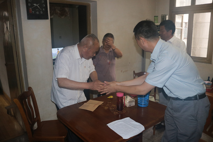 “現在身體怎么樣?生活過得好嗎?”李楊首先來到困難老黨員呂承斌家中,親切地和他拉起家常,詳細了解他的生活情況和身體健康狀況。呂承斌雖年事已高,但精神狀態很好,十分健談,他向李楊表達了全家人對黨組織的感謝。看到老人的狀態不錯,李楊十分高興,并感謝他為黨和公司的事業傾注的心血、汗水。