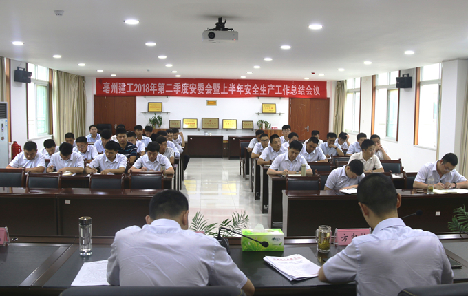 7月5日下午,亳州建工組織召開2018年第二季度安委會暨上半年安全生產總結會議,會議由公司副總經理劉軍主持,公司副董事長、安委會主任方申柱、總經理、安委會副主任張國玉出席會議并作重要講話,安委會全體成員、各項目負責人、技術負責人及安全員參加會議。