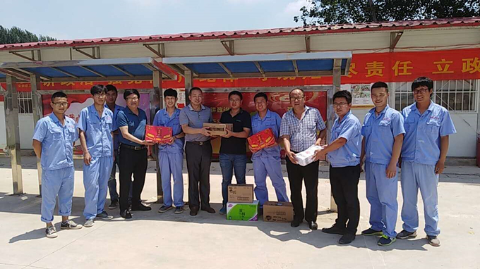 夏日炎炎,烈暑當頭,近日,全省大部高溫炙烤,公司各項目生產正緊鑼密鼓的組織施工。為確保一線員工的身體健康,7月19日,公司副總經理、總工程師劉朝發一行赴蕭楊路項目送清涼。
