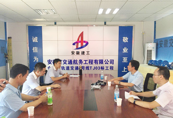 7月20日上午,安徽建工集團副總經理王厚良一行在安徽交航公司副總經理侯力的陪同下,來到合肥市軌道交通4號線TJ03標工程項目部調研工作。