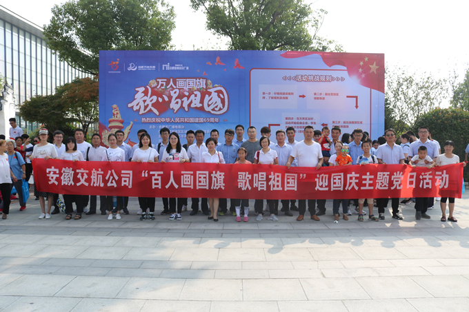 為熱烈慶祝祖國(guó)六十九周年華誕,9月15日上午,安徽交航公司黨委聯(lián)合濱湖地區(qū)區(qū)域化黨建聯(lián)盟理事會(huì),在濱湖萬(wàn)達(dá)臉譜廣場(chǎng)開(kāi)展了“百人畫(huà)國(guó)旗 歌唱祖國(guó)”迎國(guó)慶主題黨日活動(dòng)。