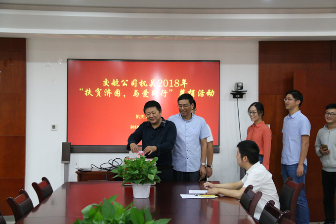 9月30日上午,機關工會在公司九樓會議室開展2018年“扶貧濟困,與愛同行”募捐活動,機關干部職工慷慨解囊,為集團幫扶的宿松縣趾鳳鄉困難群眾奉獻愛心。