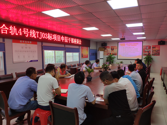 為進一步轉變作風、提振精神、提升執行力,10月8日下午,合軌4號線TJ03標項目黨支部召開中層干部座談會。安徽交航公司副總經理侯力參加會議,項目黨支部書記徐鑫主持會議。