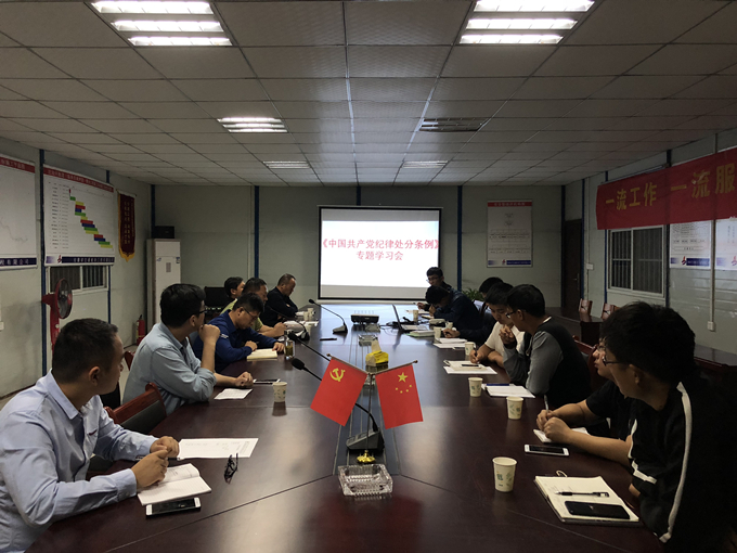 10月10日,沱澮河項目部為深刻落實全面從嚴治黨,貫徹習近平新時代中國特色社會主義思想和黨的十九大精神,組織召開學習新版《中國共產黨紀律處分條例》專題會議,項目部全體成員參加了會議。