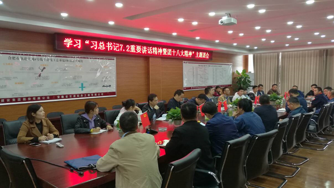 10月19日,合肥軌道交通4號線TJ03標項目部開展學習“習近平總書記7.2重要講話暨團十八大精神”主題團會。