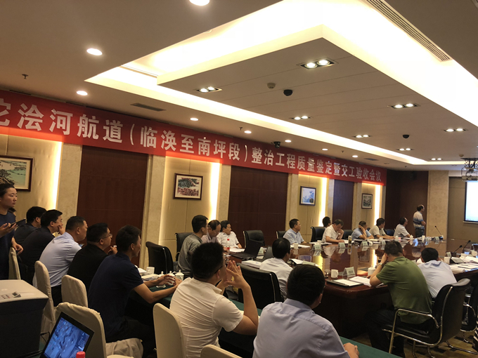 2019年7月13日上午,沱澮河航道(臨渙至南坪段)整治工程召開質量鑒定及交工驗收會,由省質監局、省海事局、淮北市質監局、淮北市交通運輸局、淮北市水務局、濉溪縣交通運輸局、濉溪縣水務局等單位的領導、專家組成的質量鑒定驗收組進行評審,公司副總經理侯力參加會議。