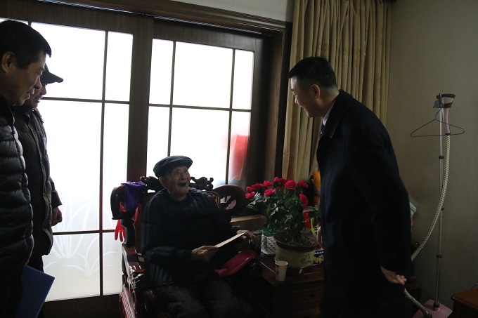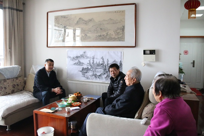 公司領(lǐng)導(dǎo)始終牽掛著離休干部們,李主席一行來到袁道甫、劉硯田家中,與老人嘮家常,了解老人的身體健康情況和家庭生活情況,代表公司向他們送上慰問金和新春的祝福,囑咐他們保重身體。