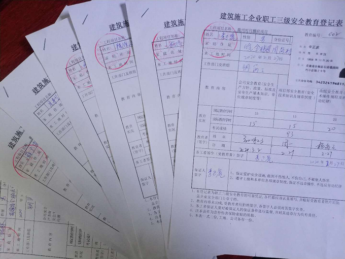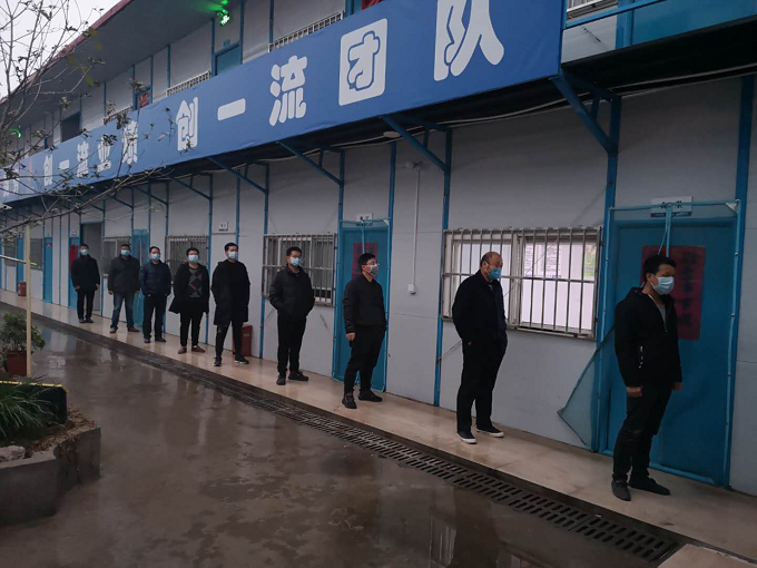 嚴格落實“一責兩案”。項目部結合實際情況和上級黨委相關要求,詳細制定了項目的疫情防控方案及復工復產方案,實行管理人員網格化包管到人制度。新進場工人填寫《項目包管人員與工人對應表》,廣泛動員管理人員人人參與、人人負責,將責任落實到個人。包管人員在現場時,要巡查現場工人,檢查其口罩佩戴情況,避免人員聚集。同時采取嚴格的防控措施:一是進場前排查。項目部嚴格篩查具有重點疫區出差(旅行)史、與重點疫區人員有接觸史的員工情況,并做登記管理;利用微信群保證防疫應急信息渠道暢通;二是建立個人健康信息系統。項目部成立了疫情防控工作小組。根據復工人員來源廣,流動性大的特點,合理分配防疫力量。每天由包管人員對工人健康狀況進行跟蹤監測并上報,確保信息報送及時、準確。建立“一人一檔”,包含《個人健康信息承諾表》、《復工施工人員健康信息登記表》、《新型冠狀病毒肺炎疫情防控承諾書》,《項目復工返崗人員信息統計表》等,確保對復工返崗人員實施實時監控,有記錄檔案。在填寫完之后,發放《疫情期間工作證》并要求工人上下班佩戴工作證;三是加強工人安全教育培訓。項目作業人員進場進行三級安全教育、防疫教育,記錄學習臺賬。各作業班組施工前需按照工種和施工特點進行安全技術交底。未經安全教育和安全技術交底的作業人員一律不準上崗;四是體溫監測。項目部每天了解管理人員的身體狀況并要求項目部管理人員每天上午、下午測量體溫。工人上下班期間需要填寫《項目部出入登記表》填寫出入時間,記錄出入溫度;五是實行定時消毒、分散作業、分散就餐制度。項目部安排專人每日對辦公區、生活區、施工區進行消毒,并記錄在《消毒登記表》中。工人上下班禁止聚集性活動,上班分散作業,佩戴口罩。工人在食堂就餐時,由班組長統一在工人食堂購買盒飯,分批次購買杜絕聚集性就餐,打水、洗漱、洗澡分區、分時進行。項目部管理人員帶頭執行;六是使用試劑檢測自查。項目部全體管理人員、食堂工作人員、門衛等經常與大量工人接觸的人員均進行了新型冠狀病毒的檢測,并填寫《安徽交航時代樾府項目部新型冠狀病毒試劑檢測結果》,經檢測,所有人員均為陰性。項目部亦儲備部分試劑,對發現體溫異常及身體不適的工人進行檢測。此舉增強了一線管理人員打贏疫情阻擊戰的信心和戰勝病毒的決心。