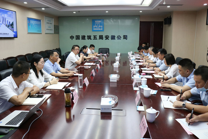 7月3日上午,公司黨委副書記、總經理方申柱一行10人到中建五局安徽公司考察交流,并與中建五局安徽公司黨委副書記、總經理陳超平會談。雙方就信息化建設、成本管理、投資運營、績效考核、項目管理以及未來可能開展合作的領域等方面,進行了深入溝通和交流。中建五局安徽公司副總經理、總工程師陳洪根,總經理助理兼皖中分公司黨總支書記、總經理文世玉,副總工程師兼工程部經理文忠于,以及相關職能部門負責人;公司黨委委員、副總經理張瓊,生產總調度、工程管理部主任周和友,以及機關有關職能部門、子分公司、項目部負責人陪同座談。