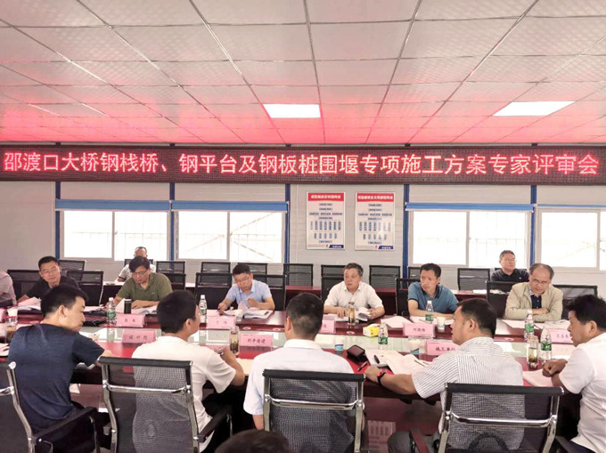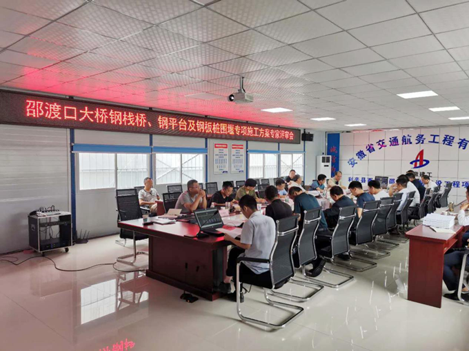 7月19日上午,安徽交航利辛縣西淝河邵渡口大橋建設工程鋼棧橋、鋼板樁圍堰專項施工方案專家評審會在利辛縣召開。公司黨委委員、副總經理張瓊主持會議。
